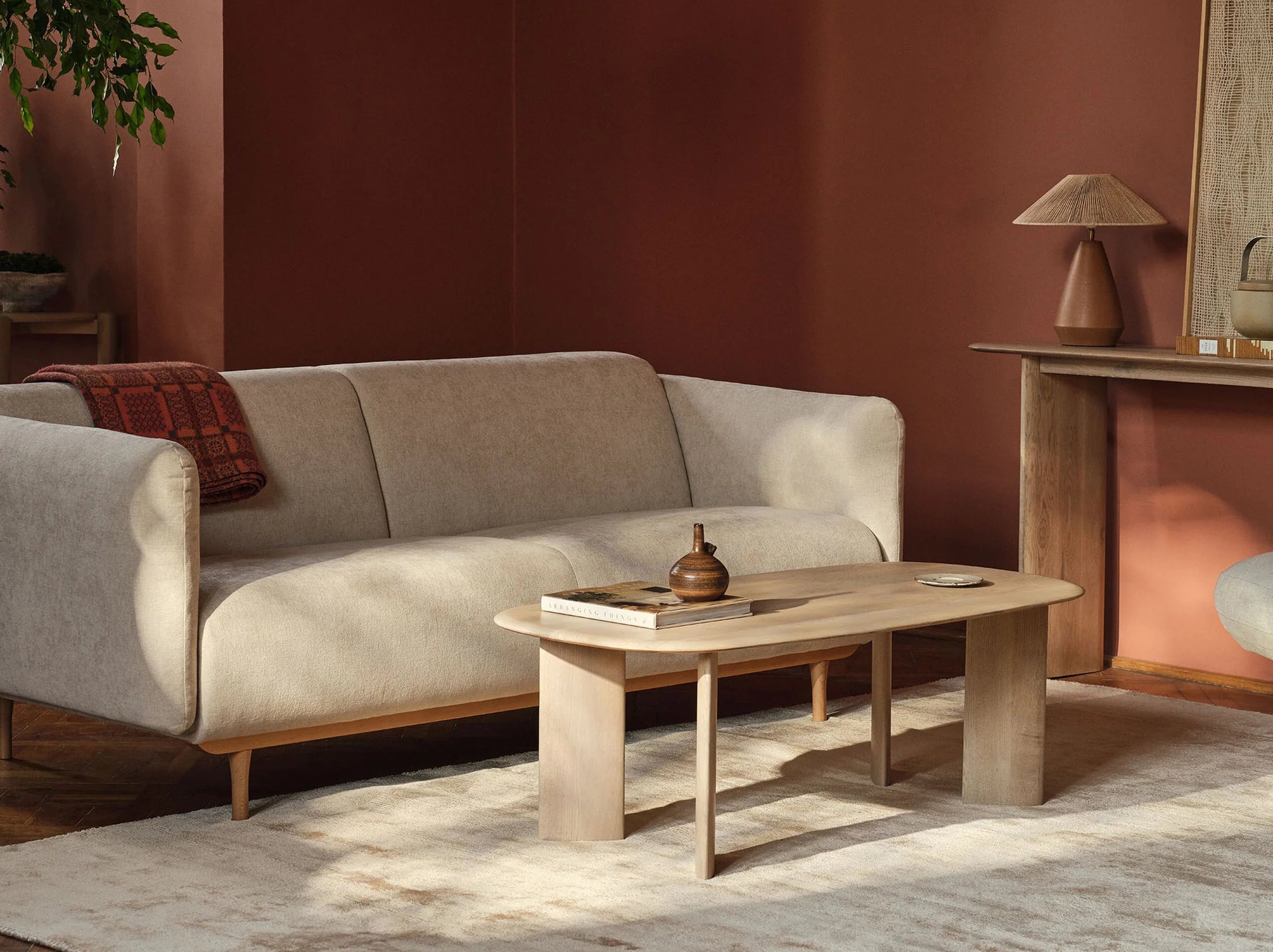 Aggie stolić za kavu sa zaobljenim rubovima i hrastovim nogama udoban je i funkcionalan dodatak vašem dnevnom boravku. Savršen je za večernje seanse i druženja.