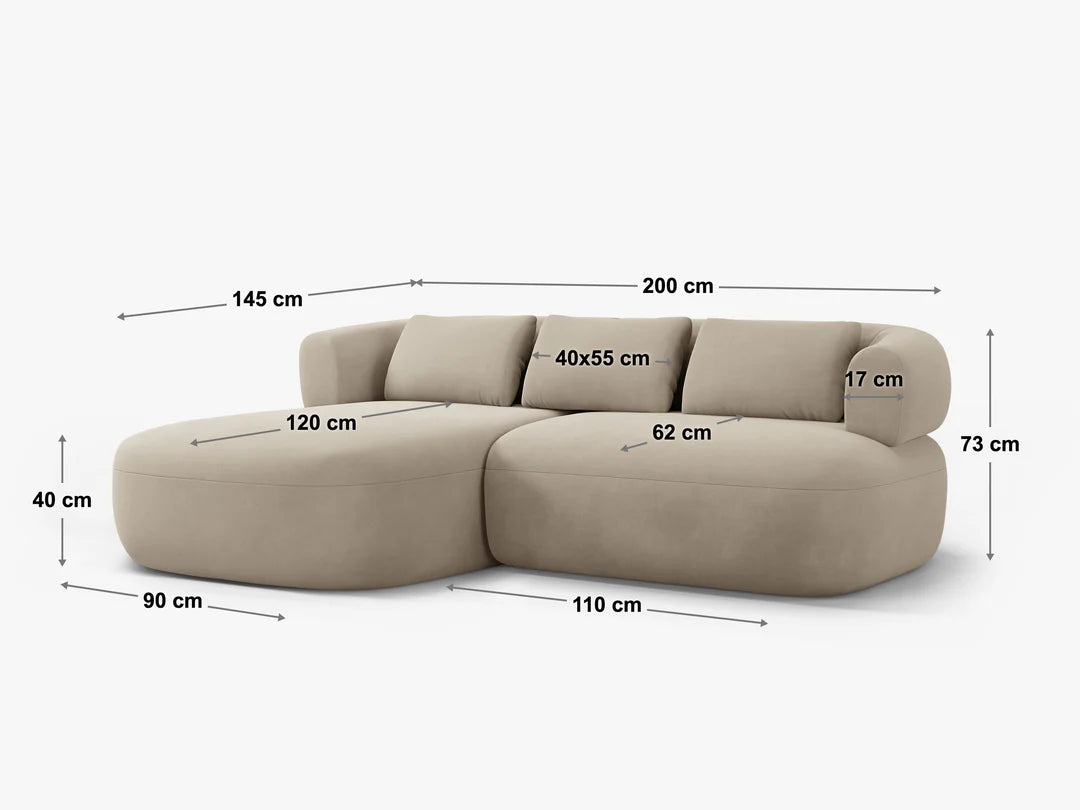Kutna sofa Jenny redefinira udobnost svojim skulpturalnim krivuljama i privlačnim dizajnom. Zaobljena sjedala i nasloni savršeni su za opuštanje, zabavu ili jednostavno podizanje vašeg prostora uz lagani stil.