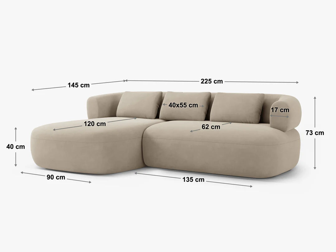 Kutna sofa Jenny redefinira udobnost svojim skulpturalnim krivuljama i privlačnim dizajnom. Zaobljena sjedala i nasloni savršeni su za opuštanje, zabavu ili jednostavno podizanje vašeg prostora uz lagani stil.