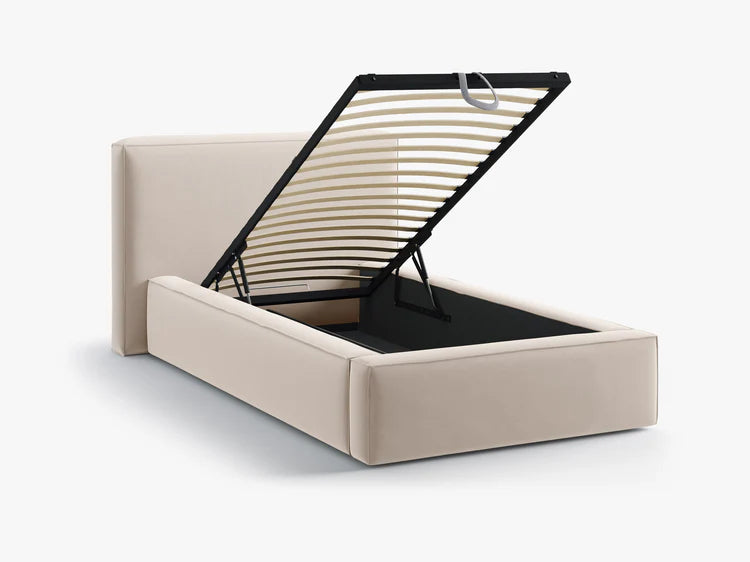 Jodie je jednokrevetni tapecirani krevet idealan za mladenačke sobe, male spavaće sobe ili sobe za goste. Njegov bezvremenski i skladan dizajn služi kao svestrana osnova za razne stilove uređenja.
