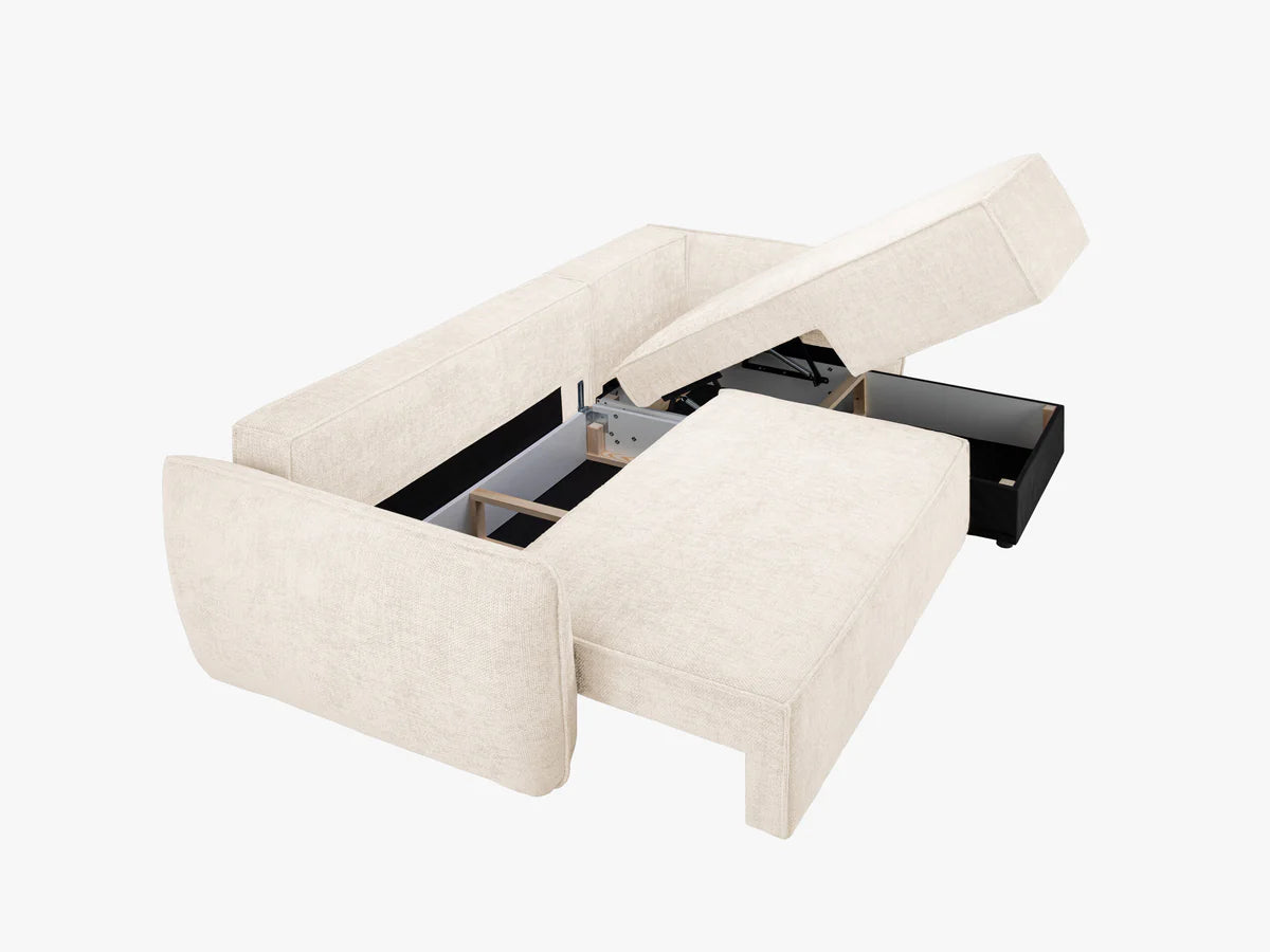 Otkrijte kutnu sofu na razvlačenje Kaelle, koja spaja eleganciju i funkcionalnost. Ova izdržljiva sofa s presvlakom koja se lako čisti savršena je za vaš dom.