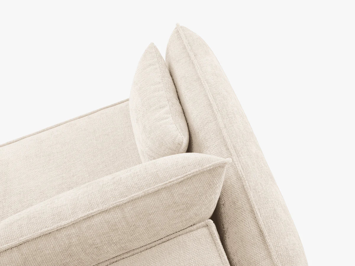Sanjate o prostranoj i udobnoj sofi za opuštanje nakon dugog dana? Ne tražite dalje od kolekcije Kaelle. Ove sofe imaju čvrste i prostrane siluete koje savršeno zadovoljavaju vaše potrebe za udobnošću. Nisko postavljen kubični oblik poziva vas na opuštanje, dok široka, elastična sjedala s oštrim rubovima naglašenim paspulom pružaju savršeno iskustvo sjedenja. Punjeni, jastučasti nasloni za ruke odišu modernošću i udobnošću, dok graciozan oblik labavih naslona ispunjenih debelom pjenom jamči iznimno iskustvo. Kaelle sofe savršene su za opremanje modernog dnevnog boravka s elegancijom, istovremeno stvarajući ugodnu atmosferu.