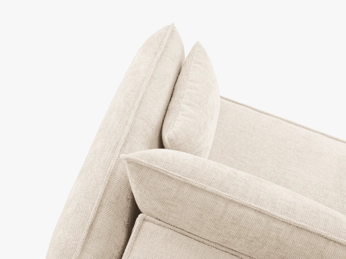 Sanjate o prostranoj i udobnoj sofi za opuštanje nakon dugog dana? Ne tražite dalje od kolekcije Kaelle. Ove sofe imaju čvrste i prostrane siluete koje savršeno zadovoljavaju vaše potrebe za udobnošću. Nisko postavljen kubični oblik poziva vas na opuštanje, dok široka, elastična sjedala s oštrim rubovima naglašenim paspulom pružaju savršeno iskustvo sjedenja. Punjeni, jastučasti nasloni za ruke odišu modernošću i udobnošću, dok graciozan oblik labavih naslona ispunjenih debelom pjenom jamči iznimno iskustvo. Kaelle sofe savršene su za opremanje modernog dnevnog boravka s elegancijom, istovremeno stvarajući ugodnu atmosferu.