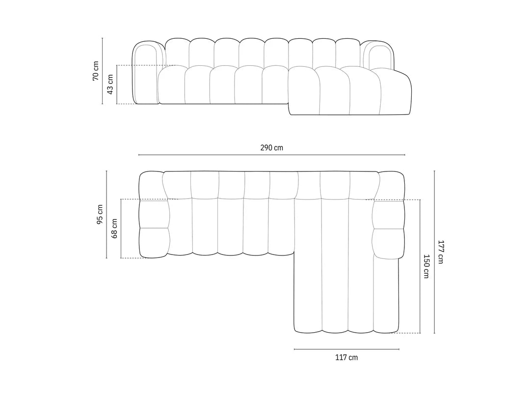 Kolekcija nudi nekoliko opcija sofa, uključujući modele sa zatvorenim naslonima za ruke ili otvorenim dizajnom, a umjesto tradicionalnih kutova, pronaći ćete graciozne, zakrivljene oblike sjedala. Zahvaljujući fleksibilnosti pojedinačnih modula, možete stvoriti jedinstvene konfiguracije koje bez napora spajaju stil i udobnost.