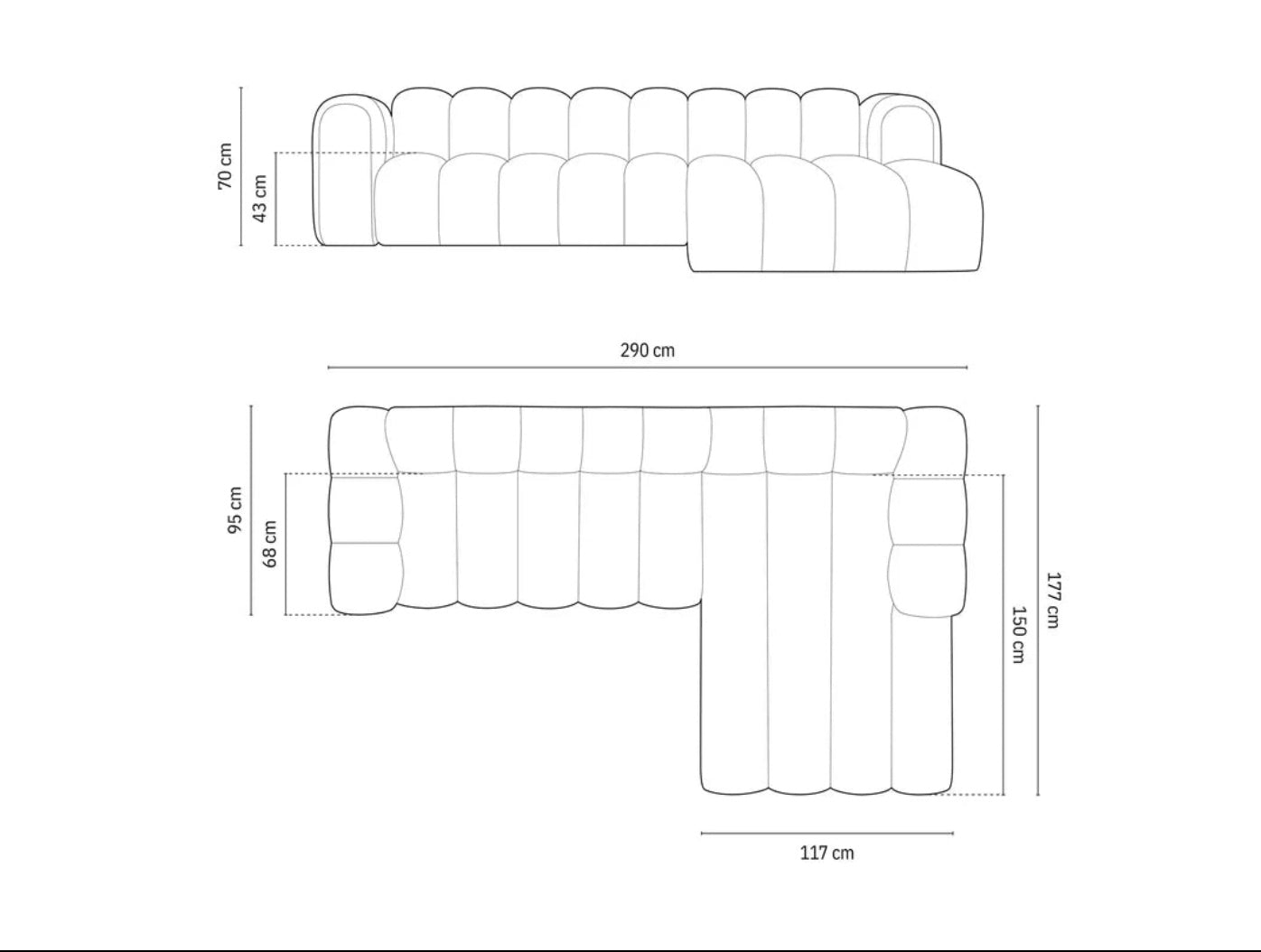 Kolekcija nudi nekoliko opcija sofa, uključujući modele sa zatvorenim naslonima za ruke ili otvorenim dizajnom, a umjesto tradicionalnih kutova, pronaći ćete graciozne, zakrivljene oblike sjedala. Zahvaljujući fleksibilnosti pojedinačnih modula, možete stvoriti jedinstvene konfiguracije koje bez napora spajaju stil i udobnost.