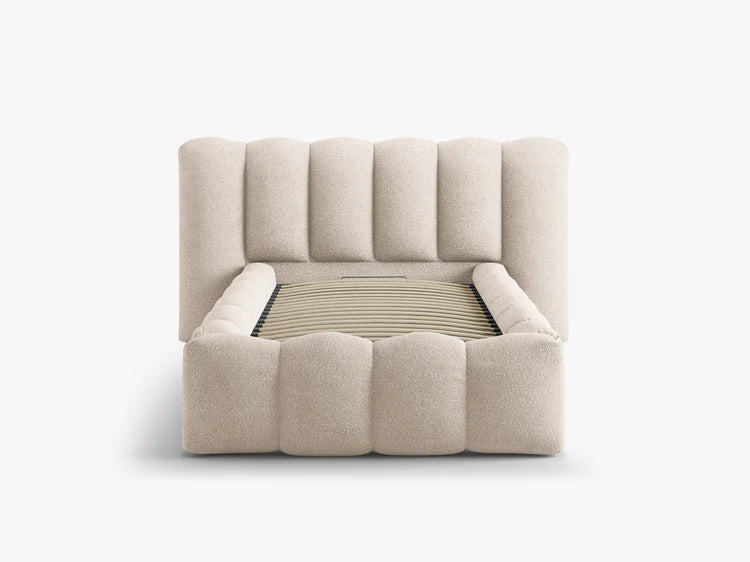Kutija: Kutija za krevet s plinskim podizačem, otvaranje sprijeda, maksimalno opterećenje kutije: 7 kg. Boje namještaja koje vidite na zaslonu mogu se razlikovati ovisno o postavkama prikaza vašeg uređaja. Kreveti se prodaju bez madraca, posteljine ili ukrasa. Priložene fotografije prikazuju primjer rasporeda. Ovisno o veličini proizvoda, broj prošiva na uzglavlju može varirati.