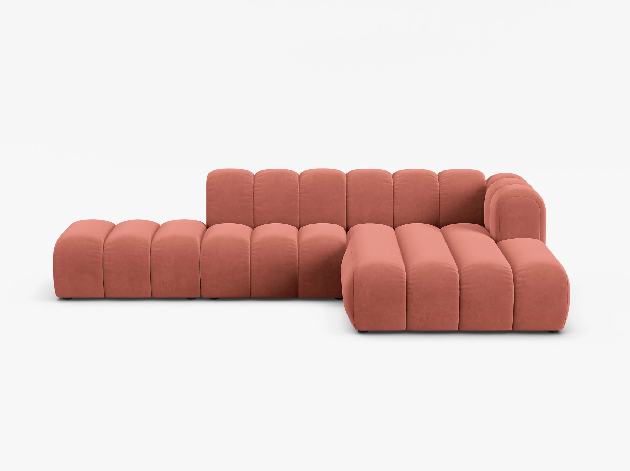 Kolekcija nudi nekoliko opcija sofa, uključujući modele sa zatvorenim naslonima za ruke ili otvorenim dizajnom, a umjesto tradicionalnih kutova, pronaći ćete graciozne, zakrivljene oblike sjedala. Zahvaljujući fleksibilnosti pojedinačnih modula, možete stvoriti jedinstvene konfiguracije koje bez napora spajaju stil i udobnost.