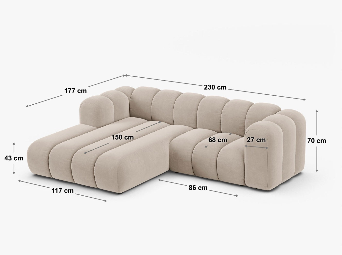Kolekcija nudi nekoliko opcija sofa, uključujući modele sa zatvorenim naslonima za ruke ili otvorenim dizajnom, a umjesto tradicionalnih kutova, pronaći ćete graciozne, zakrivljene oblike sjedala. Zahvaljujući fleksibilnosti pojedinačnih modula, možete stvoriti jedinstvene konfiguracije koje bez napora spajaju stil i udobnost.