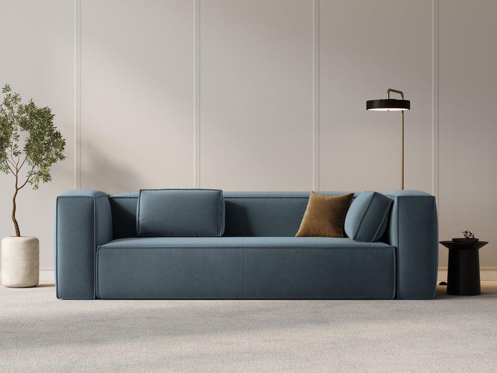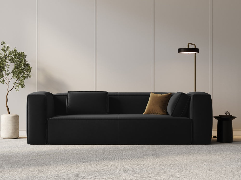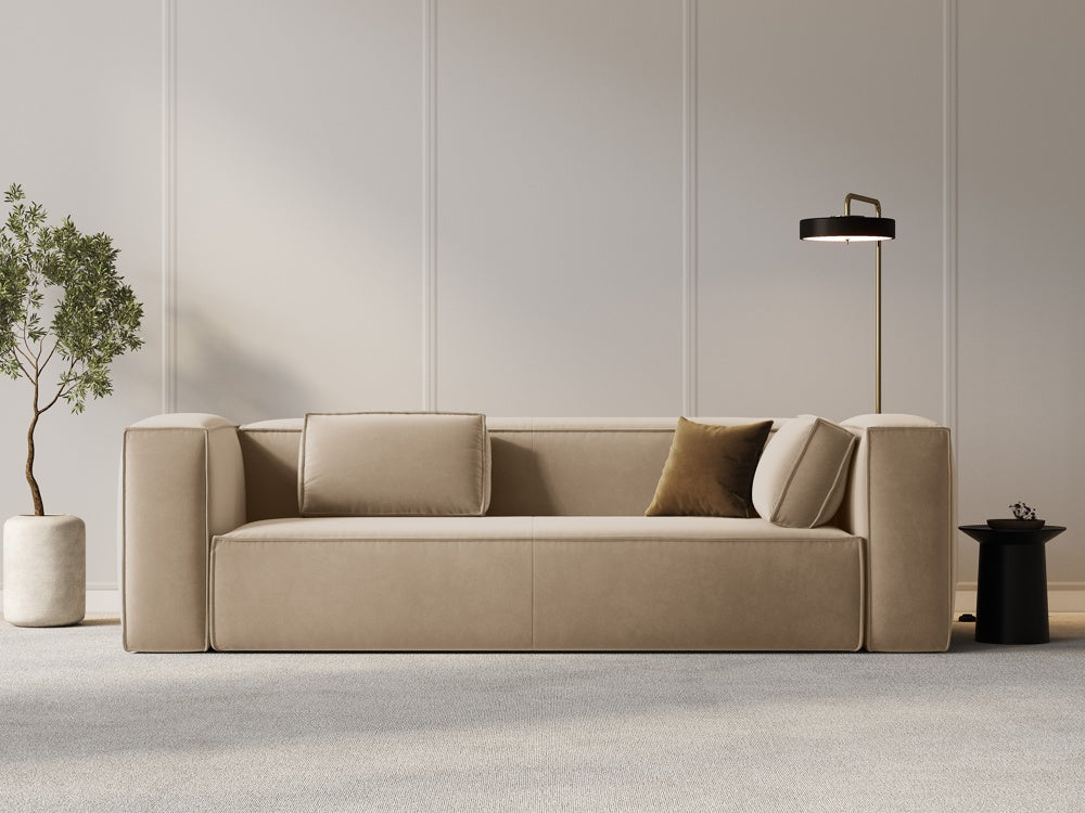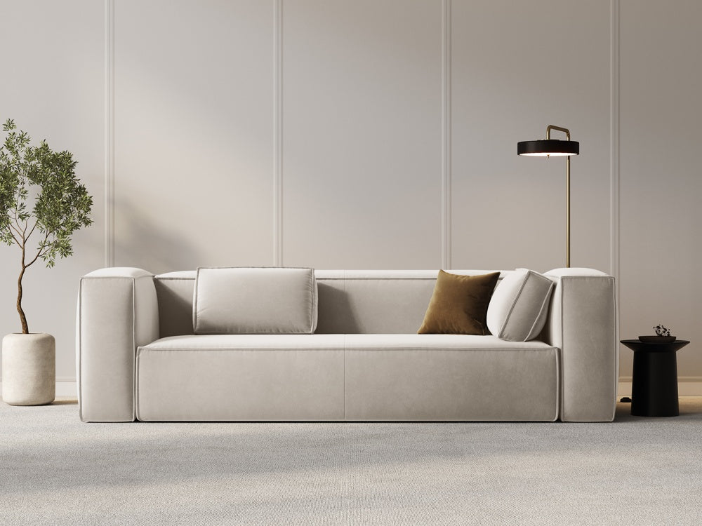 Iznimno mekani baršun s vrlo blagim sjajem i glatkom, ravnom površinom. Nježna i plišana tekstura ugodna je na dodir i elegantnog izgleda. Ova visokokvalitetna tkanina izgleda sofisticirano i plemenito na namještaju. Istodobno im daje ugodan karakter. Tkanina je obogaćena tehnološki naprednim svojstvima. Prije svega, vrlo je otporan na abraziju. Također pokazuje otpornost na ogrebotine, što ga čini dobrim izborom za ljubitelje kućnih ljubimaca. Važna karakteristika tkanine je otpornost na mrlje i sporo upijanje tekućina, što čini čišćenje znatno lakšim. Zahvaljujući ovim prednostima, namještaj presvučen velvet tkaninom služit će vam puno duže.