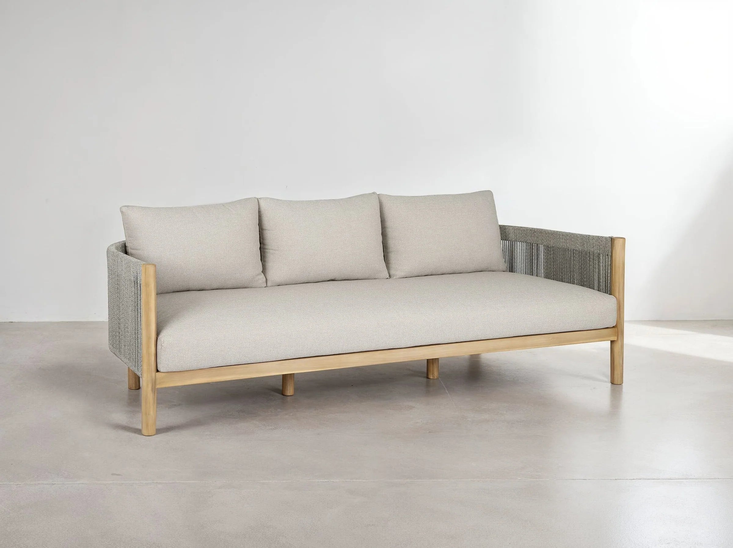 Majorelle klupa za odmor s 3 sjedala nudi dovoljno mjesta za sjedenje sa svojim čvrstim okvirom od bagrema, detaljima od pletenog užeta i plišanim jastucima. Izvrstan je izbor za terase i vanjske prostore.
