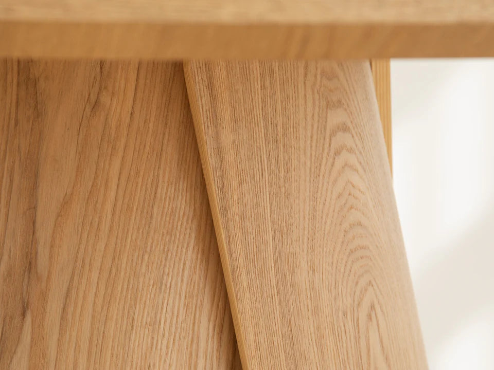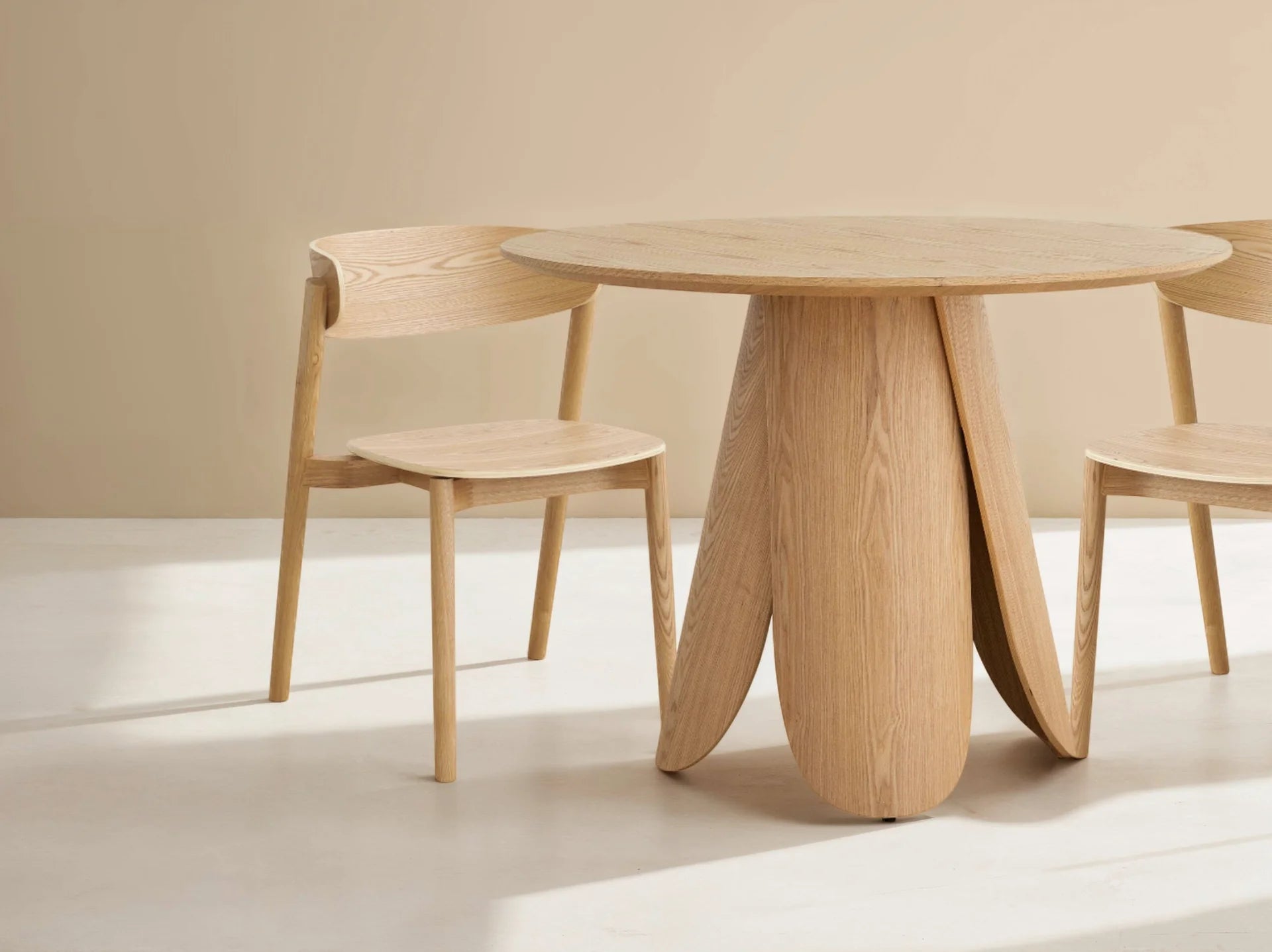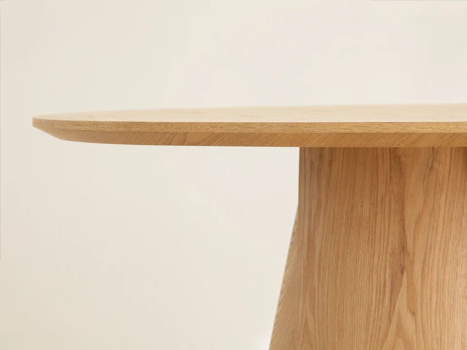 Okrugli oblik blagovaonskog stola Mares idealan je za stvaranje ugodne atmosfere, čak i u manjim prostorima. Njegova kompaktna veličina omogućuje mu da se lako uklopi u ugodne blagovaonske kutke, a istovremeno pruža dovoljno prostora za ugodna druženja. Dizajniran s prirodnom drvenom završnom obradom, dodaje toplinu i eleganciju svakom interijeru. - Dizajn koji štedi prostor – Okrugli oblik bez napora se uklapa u male kutove i blagovaonice. - Topao i prirodan izgled – Furnir na ploči stola donosi osjećaj sklada i mekoće. - Elegantna baza s jednom nogom – Ima čvrstu središnju nogu izrađenu od šperploče s furnirom jasena za profinjen dodir. - Upotpunite set – Prekrasno se uparite s blagovaonskim stolicama Mares za kohezivan izgled.