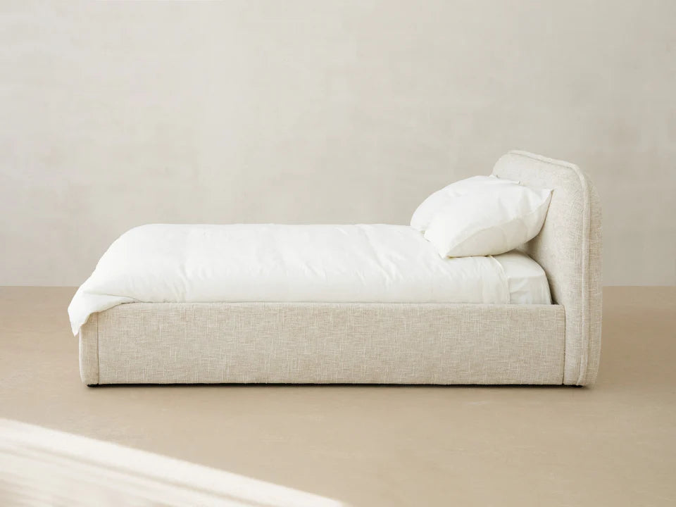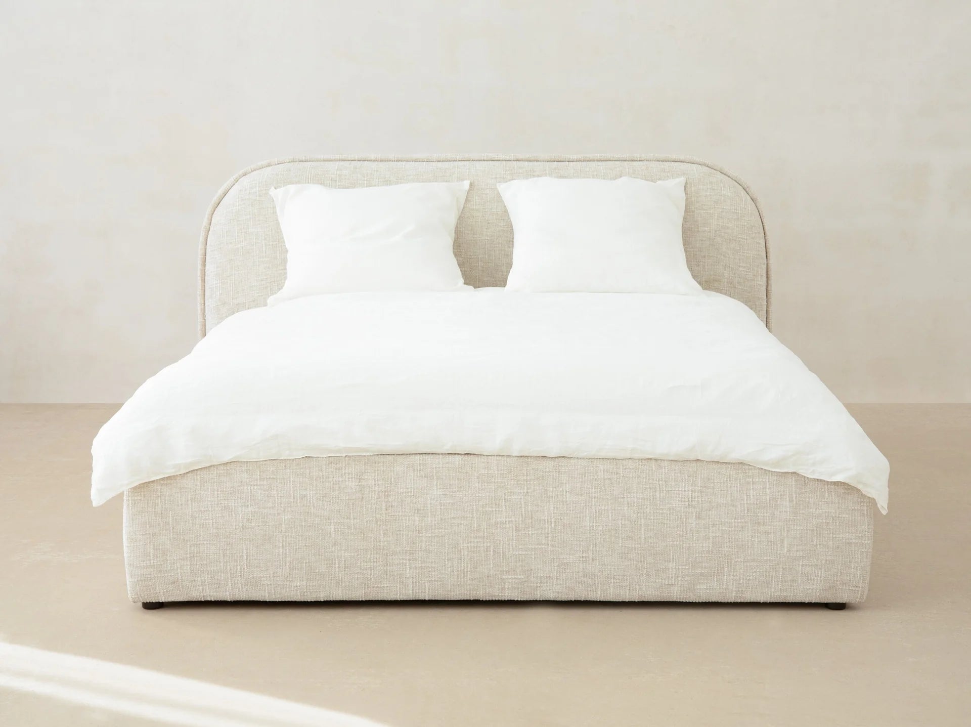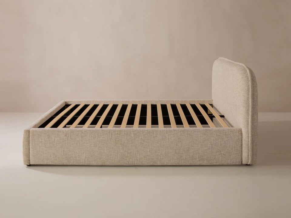 Okvir kreveta Murada kombinira toplinu i eleganciju, što ga čini prekrasnim dodatkom vašoj spavaćoj sobi. Njegovo zaobljeno uzglavlje stvara ugodnu atmosferu. Presvlaka od mekane šenil tkanine ne samo da dodaje zapanjujuću teksturu, već i poboljšava ukupnu udobnost.