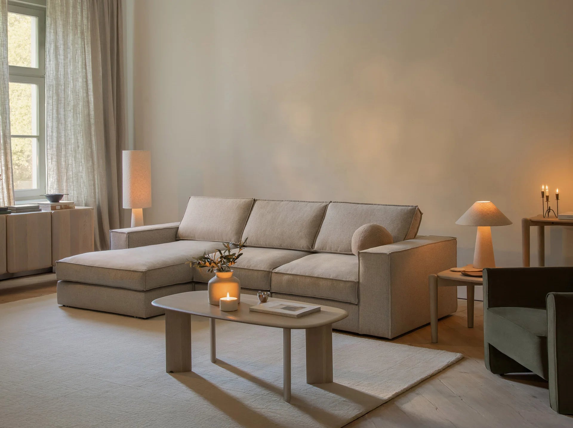 Prostrana i decentna, Pola sofa za 4 osobe kombinira udobnost i strukturu. Dizajnirana za okupljanje, opuštanje i uživanje - bez gubitka elegantnog oblika.