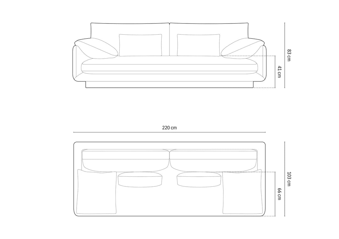 Ova sofa ima pomične jastuke koji su sašiveni zajedno s naslonima za ruke.